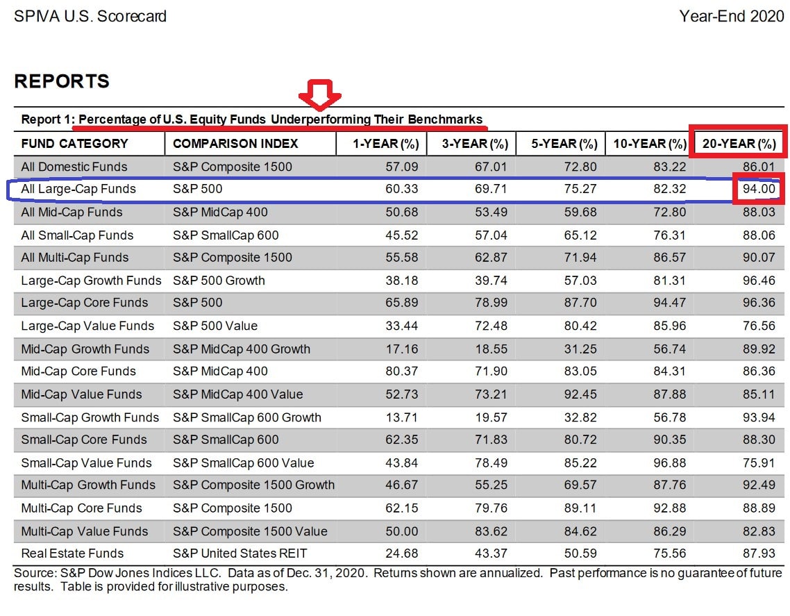 As a final upside, it is worth mentioning that this strategy would have handily beaten more than 94% of professionally managed US large-cap funds. In general, fund managers find it very difficult to beat the benchmarks. This will be the subject of another article, but impatient readers can already refer to the latest S&P SPIVA US scorecard here with the key table on page 9 copy-pasted below. Did you know you could easily outperform nine out of ten professionals? Well, now you know...